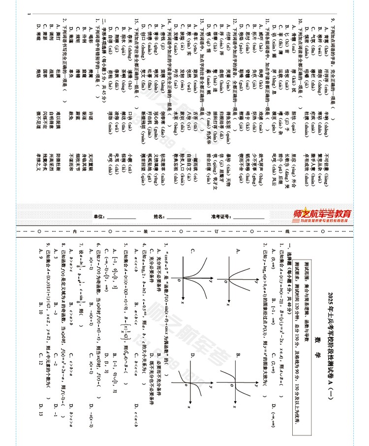实物2026士兵军士专升本复习军考仿真试卷仿真练习模拟试题
