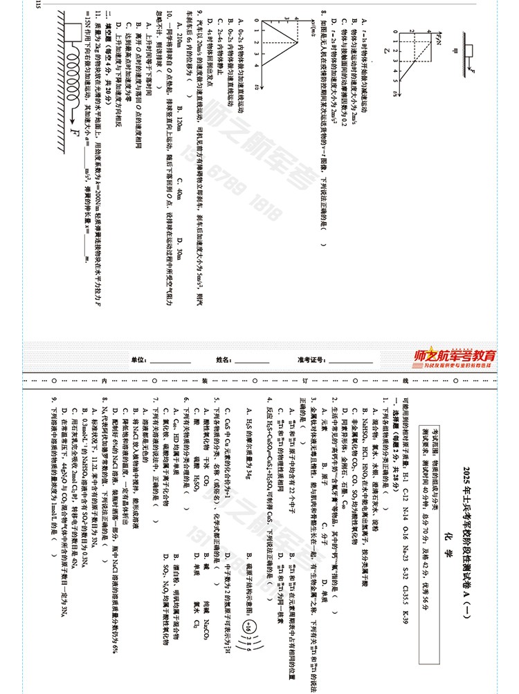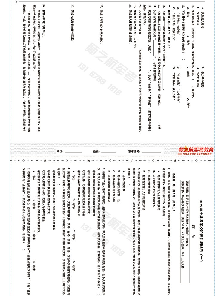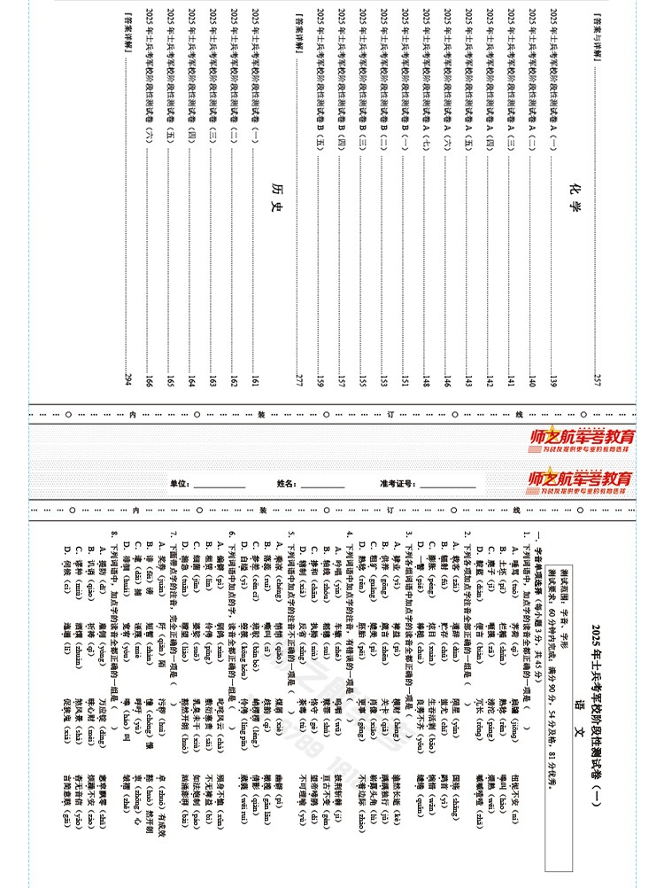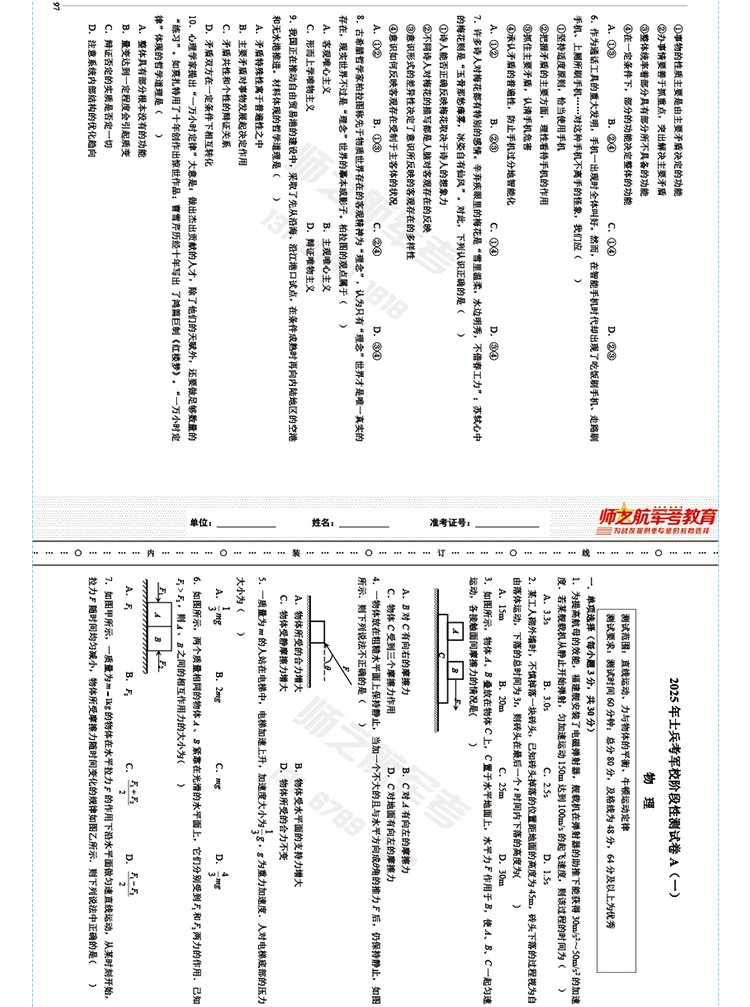 实物2026士兵考军校复习军考试卷仿真练习模拟题仿真试题
