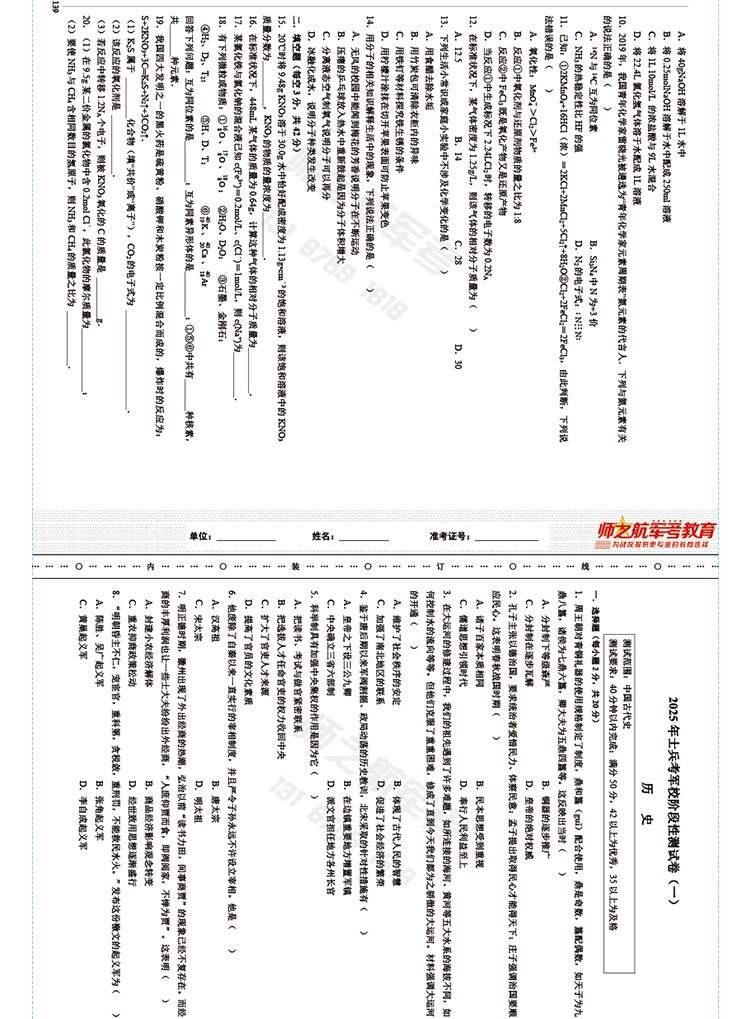 高中军考阶段卷 阶段测试 模块检测 已售 656 不包邮