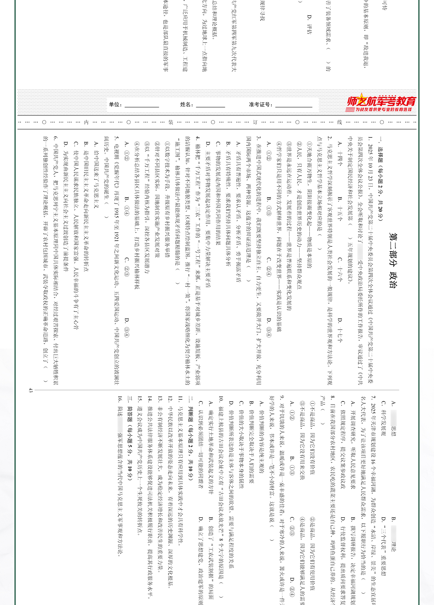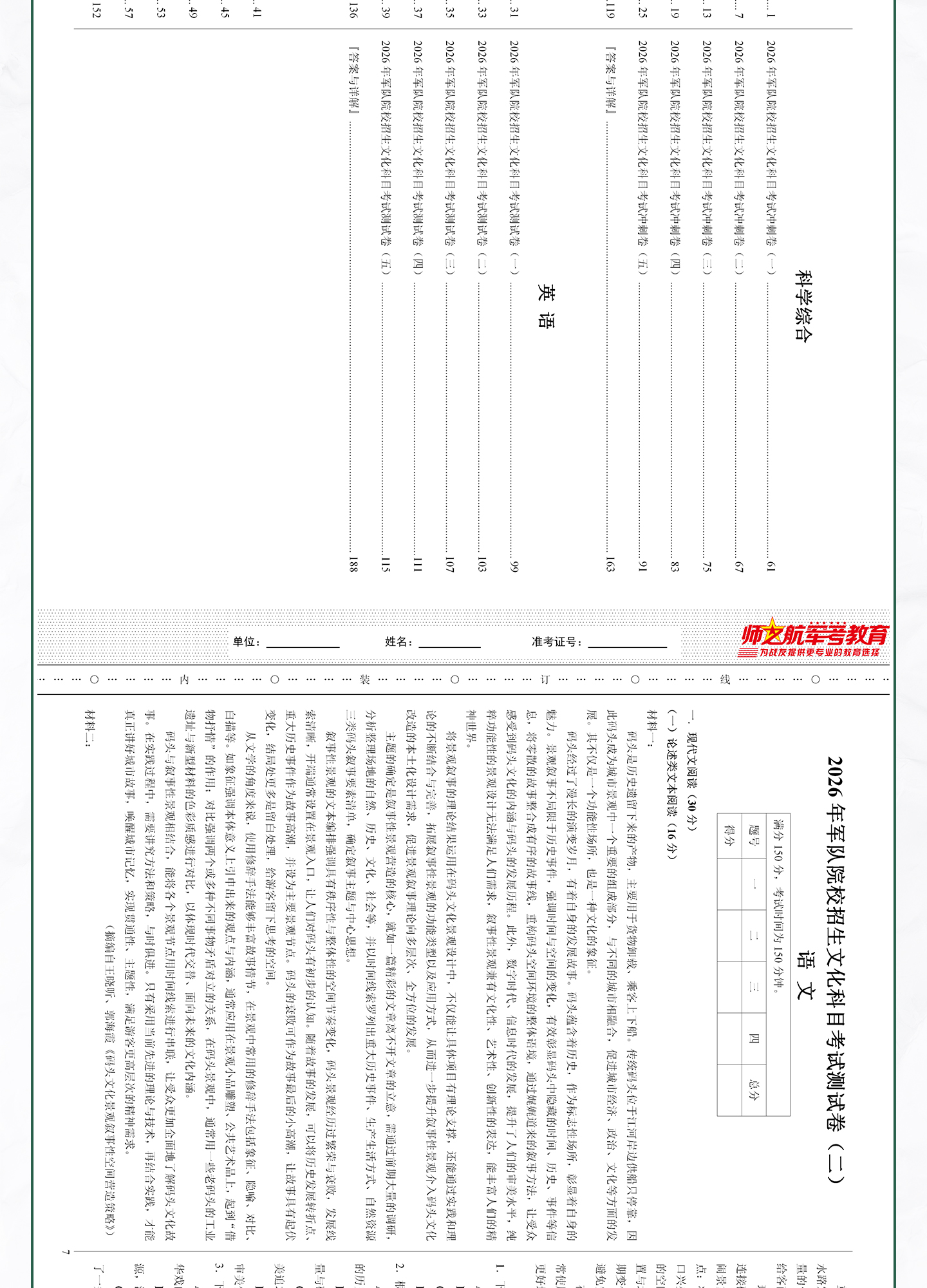 实物2026本科士兵提干试卷军考密卷军考试卷复习资料