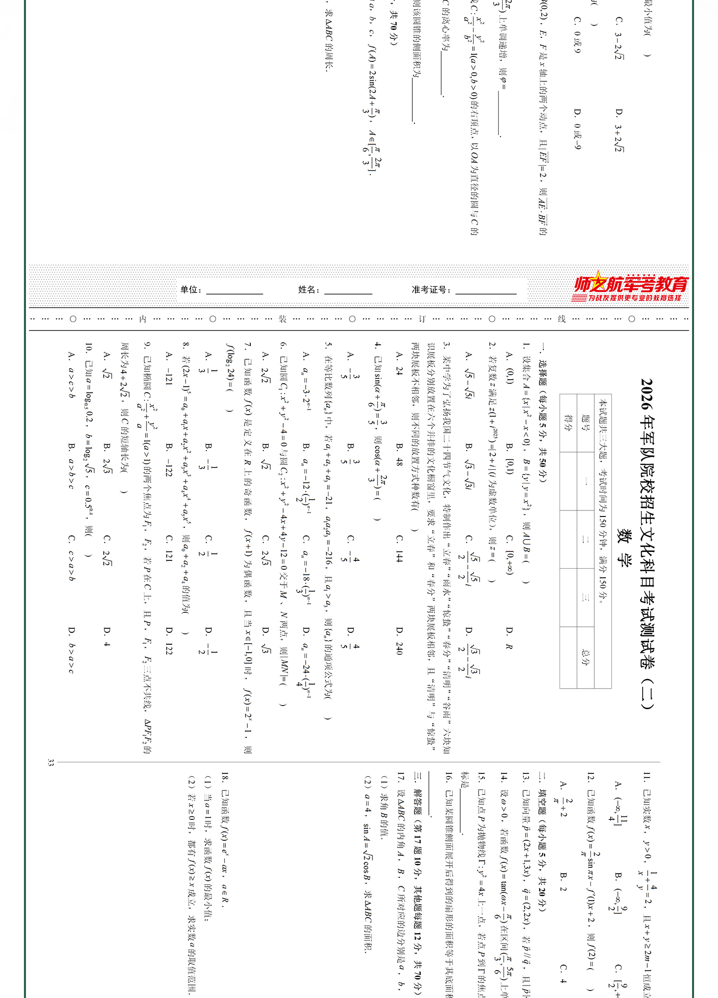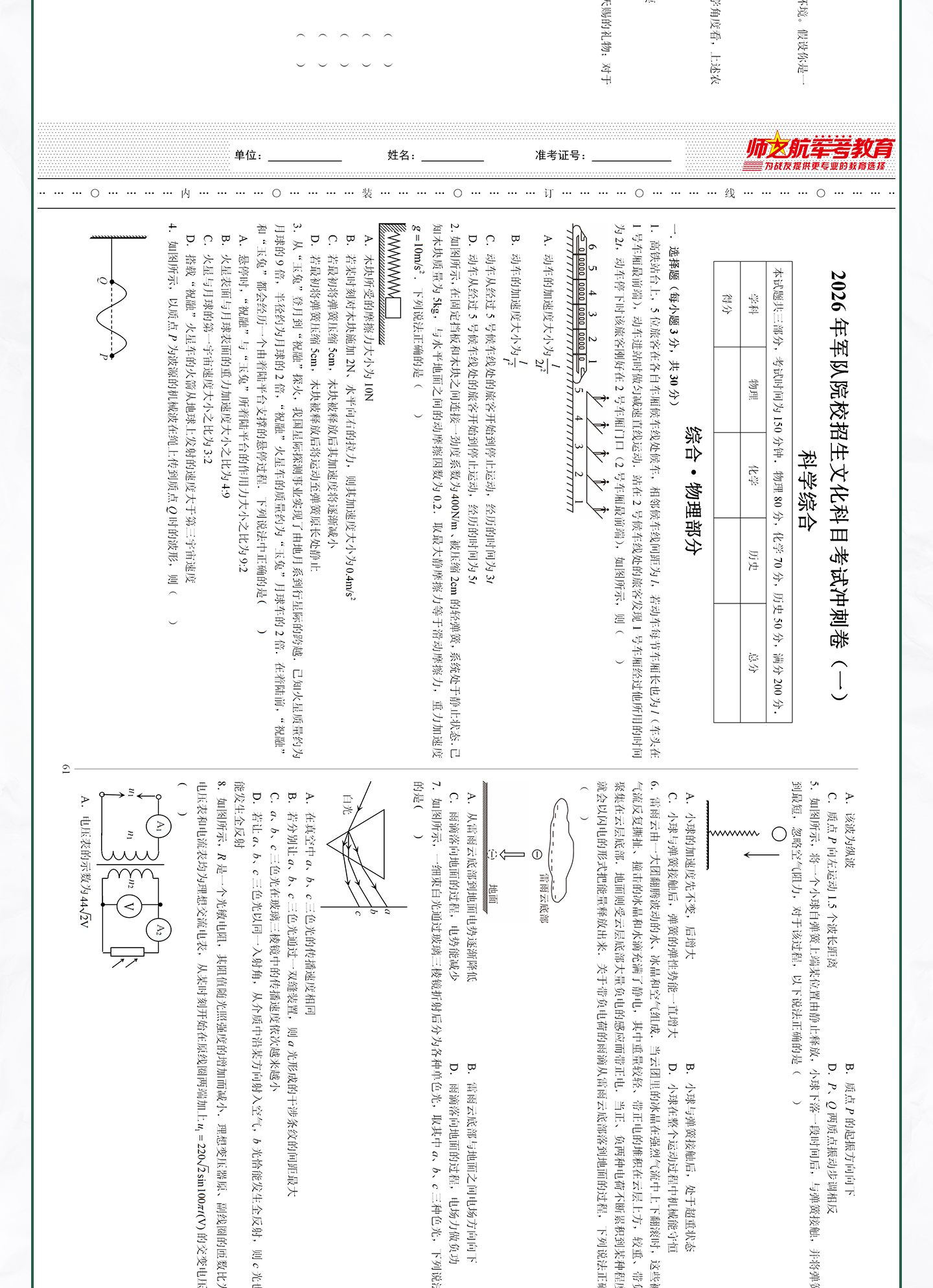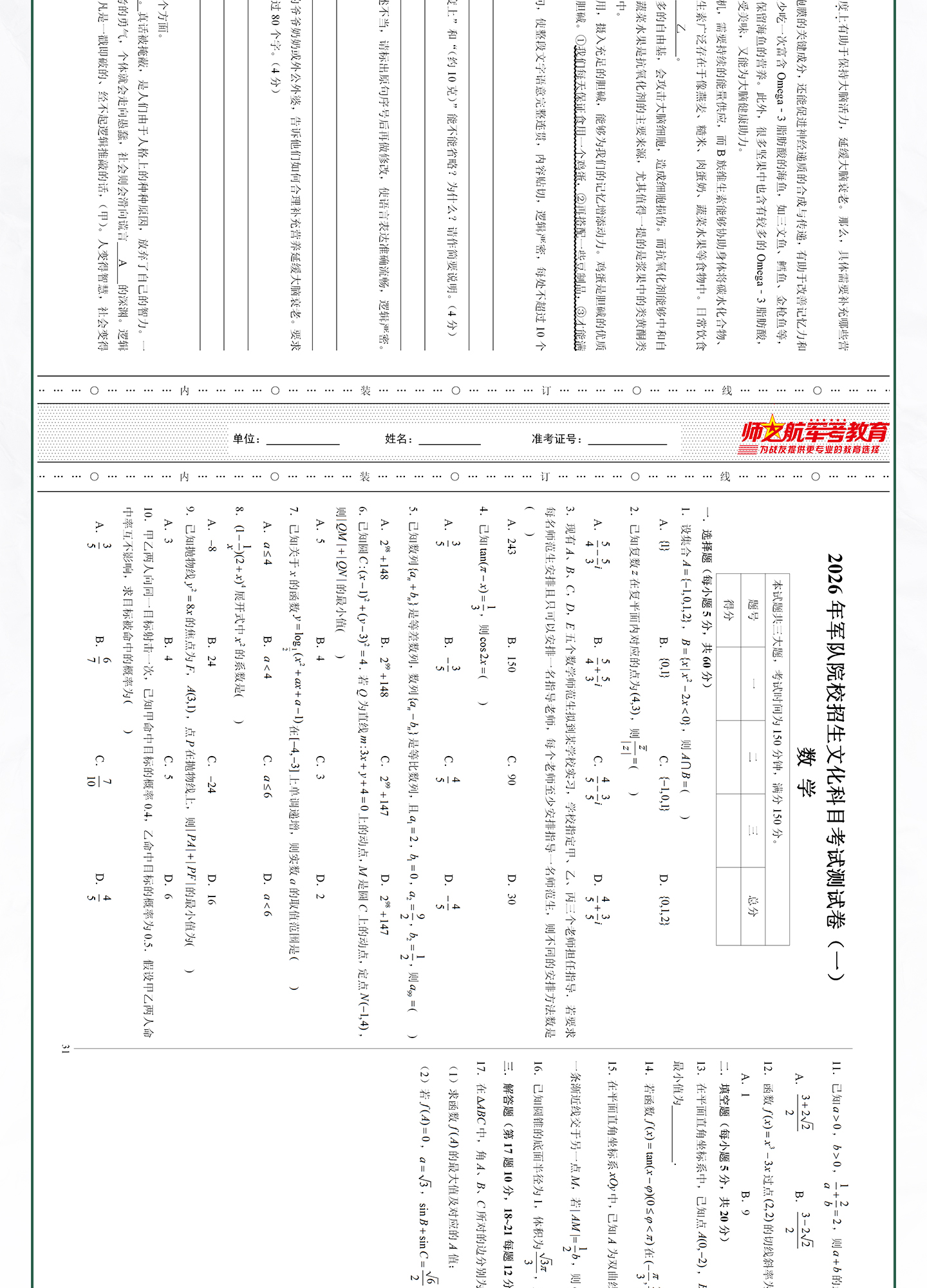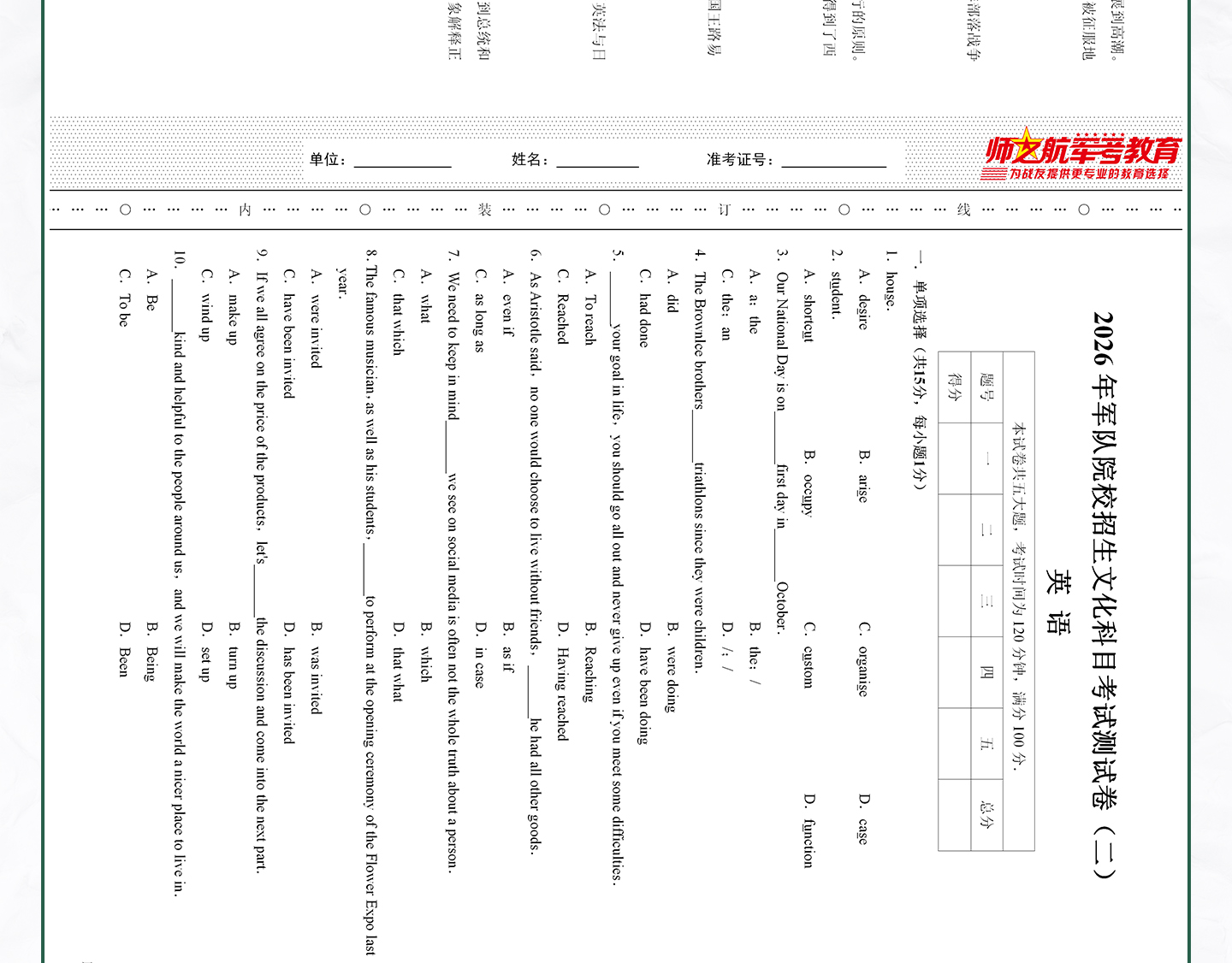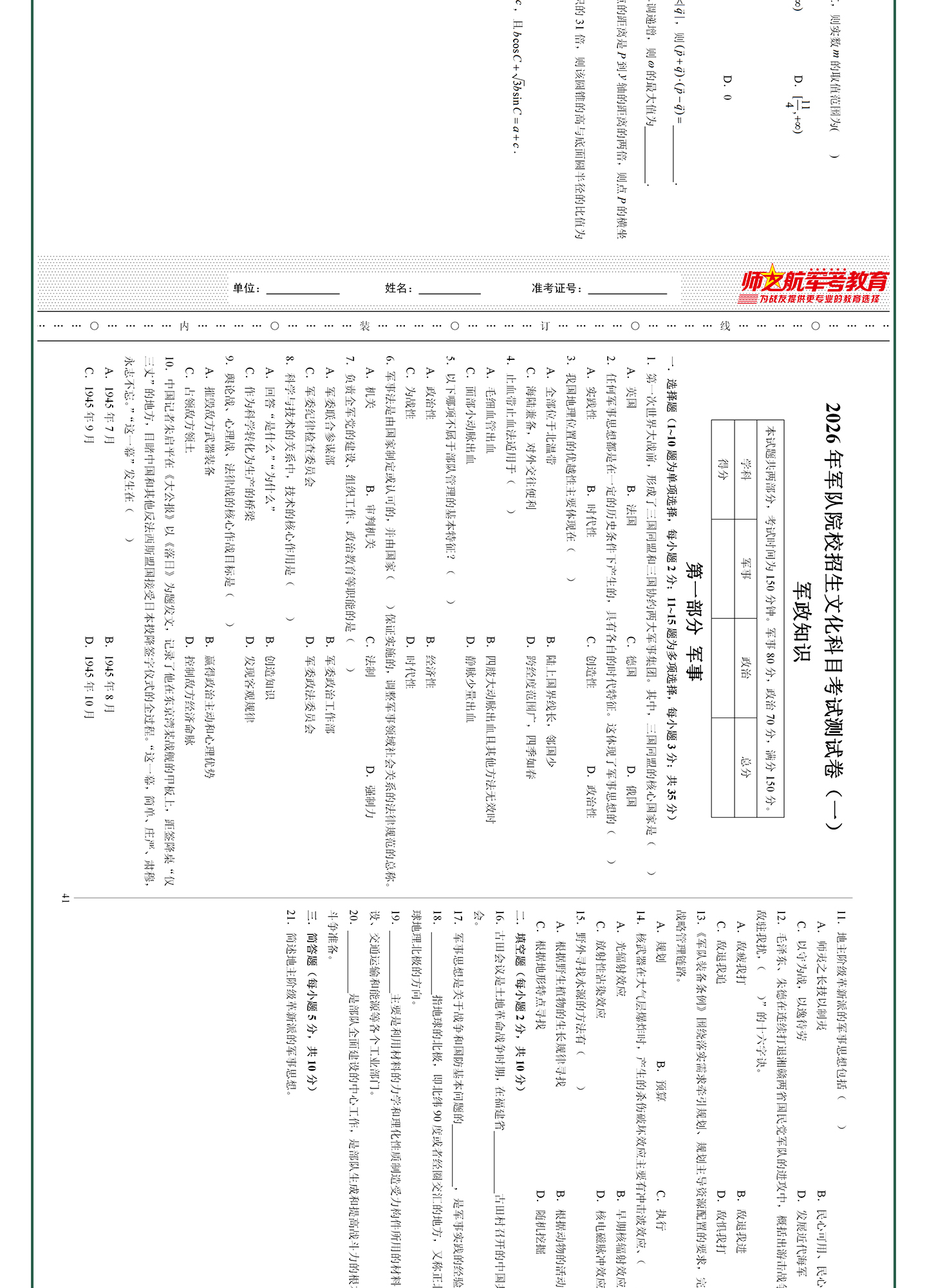 实物2026士兵考军校复习军考试卷仿真练习模拟题仿真试题