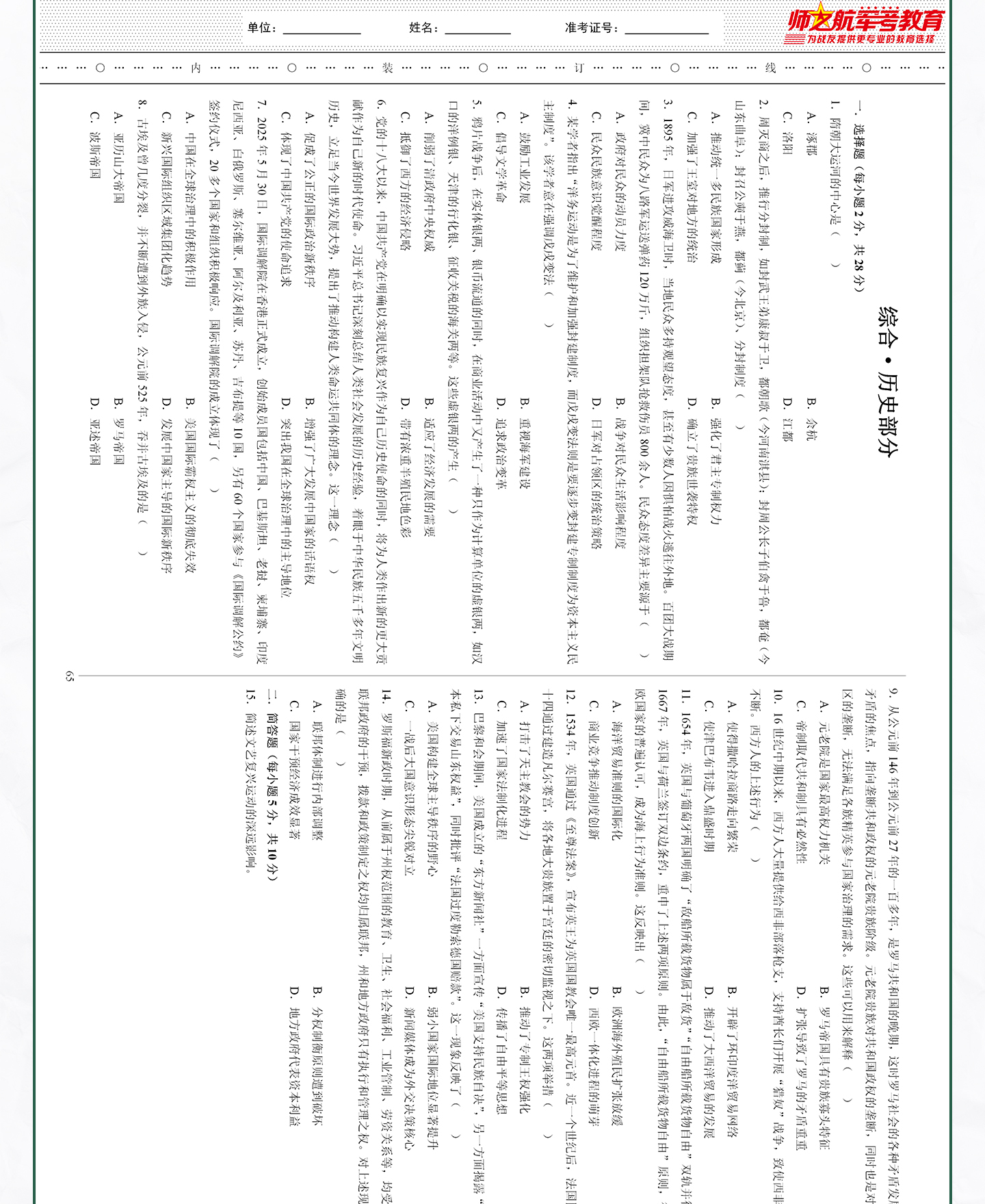 实物军考高中士兵考军校考前复习冲刺试卷考前复习资料